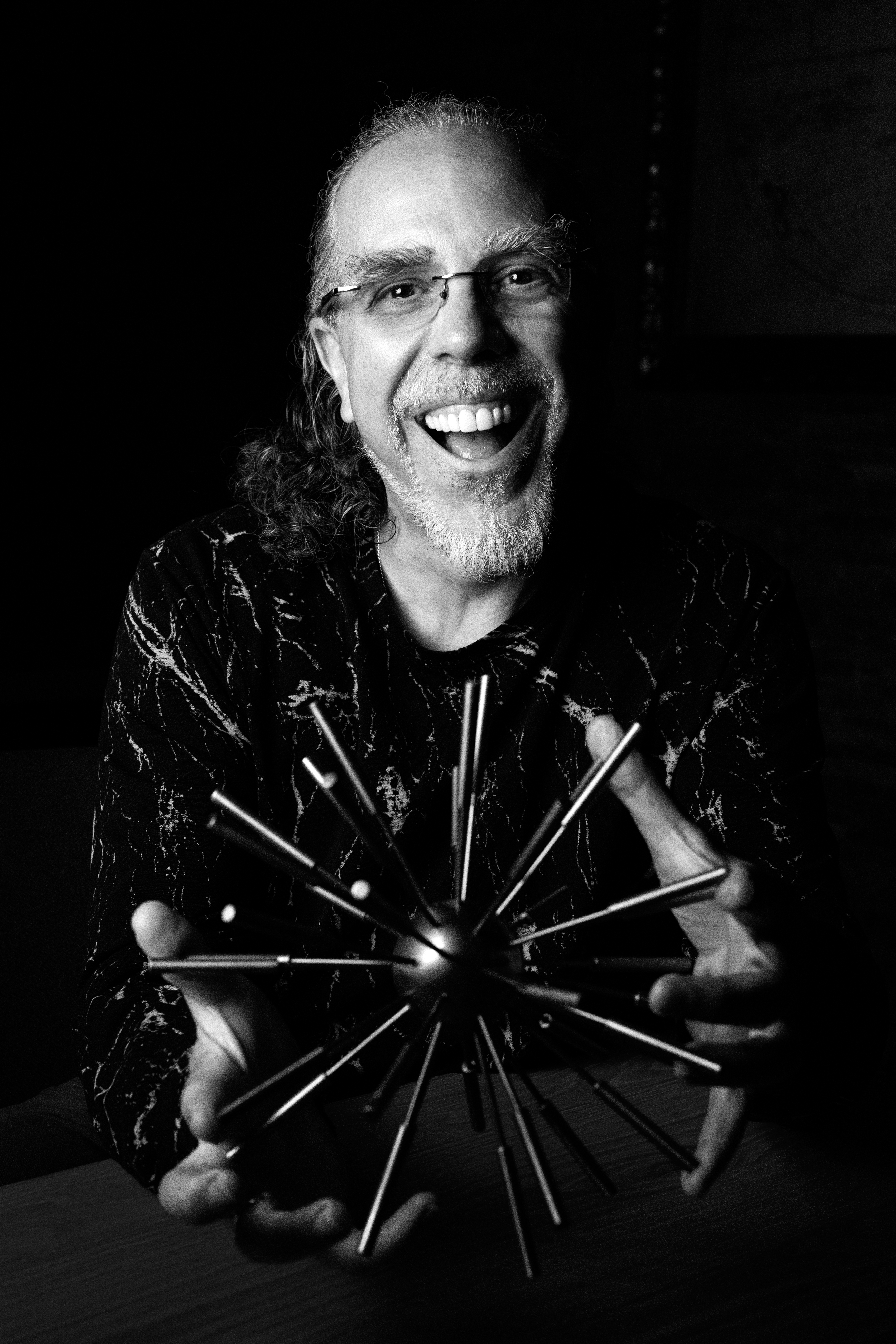 When I photographed him, we found a quiet spot at X. His posture was relaxed, one hand on his face in thought, the other resting on his knee. The black-and-white portrait captures a moment of calm in a life spent chasing possibility. You can see the years of thinking, risk-taking, and encouraging others to leap. You can see the ease of someone who has made peace with uncertainty and found joy in the not-knowing.